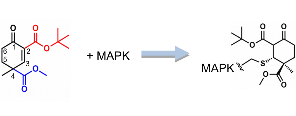 Depending on the substituent groups and/or the configuration at C4, cyclohexenone based compounds may bind to the MAPK D-groove cysteine or nearby histidine (C161 or H125 in ERK2).