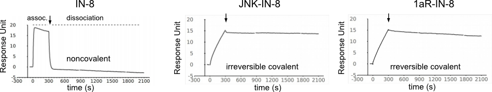 Mitogen-activated protein kinases (MAPK) have a shallow protein-protein interaction surface, the so-called docking groove (D-groove). We developed compounds that form a reversible covalent bond with a universally conserved cysteine located in the middle of the D-groove. These compounds compete with the binding of MAPK partner proteins and thus interfere with MAPK signaling involved in cancer and inflammatory diseases.